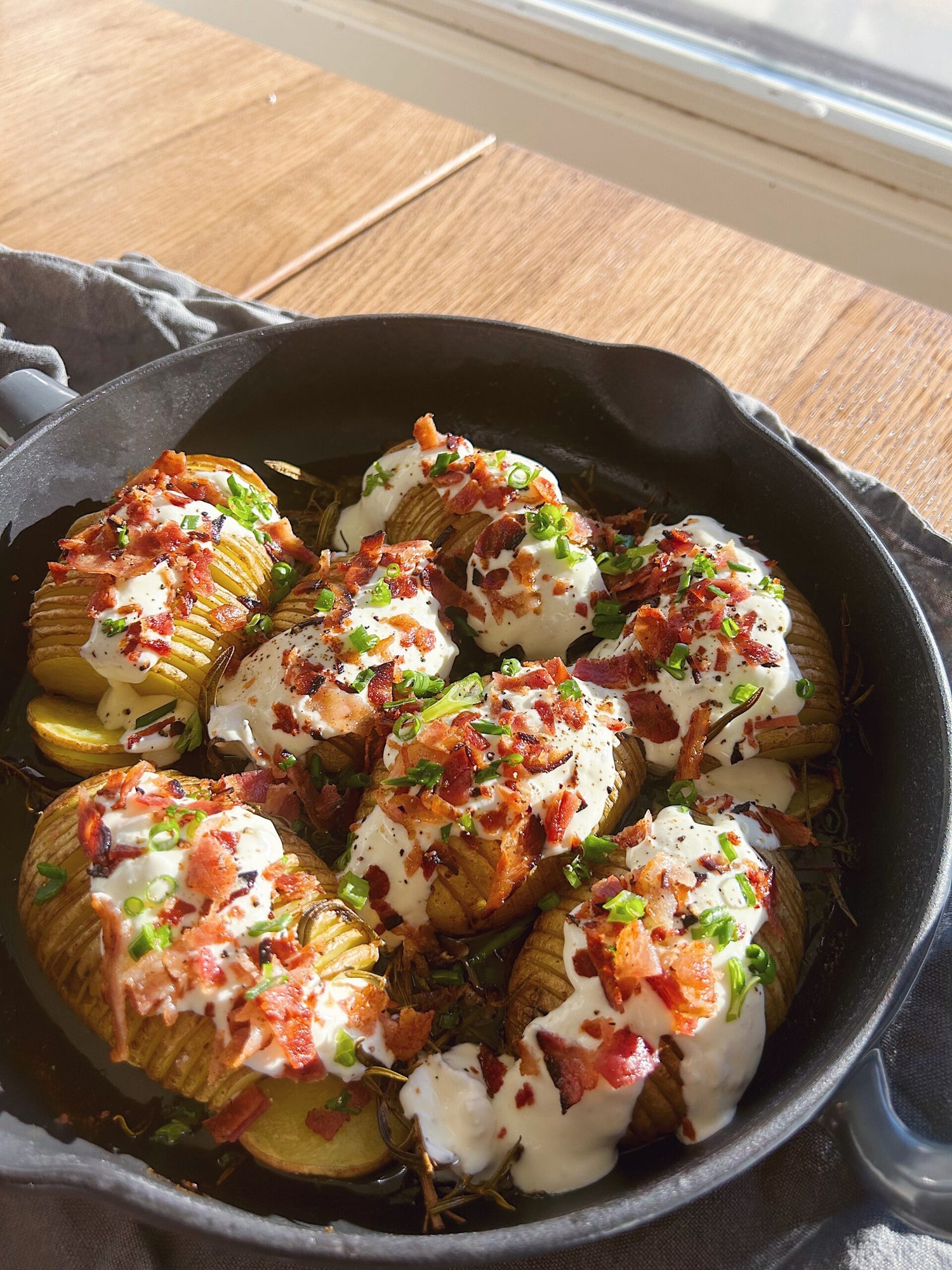 Tavalliset uuniperunat ovat hyviä, mutta Hasselback-perunat ovat upeita ja yhtä helppoja tehdä! Viimeistelty kermaisella valkosipulikastikkeella ja rapeilla pekonipaloilla, mikä tekee siitä täydellisen pehmeän ja rapean yhdistelmän. Tämä on paistettujen perunoiden huippu!