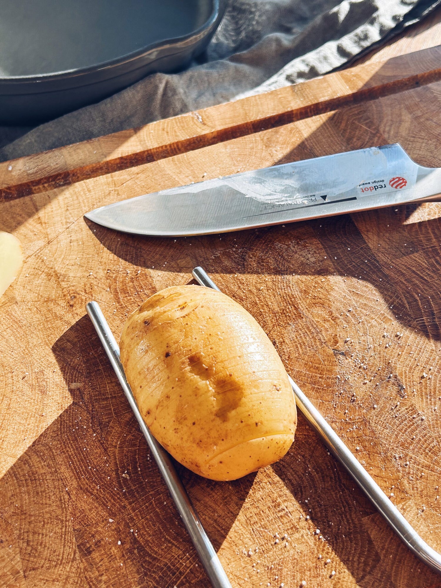 Tässä reseptissä käytimme valurautapannuamme, joka sopii täydellisesti tarjoiluun kauniin muotonsa ja kokonsa ansiosta. Muista vain poistaa puinen kahva, kun paistat uunissa!