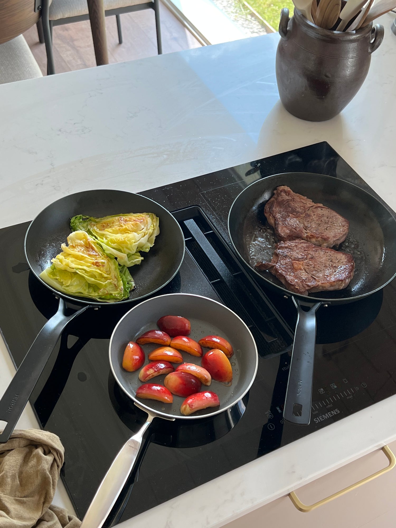 My summer kitchen wouldn’t be complete without our beautiful Royal Pearl pans – the light surface makes food look extra delicious. Our Blacksteel Pro pans also get plenty of use – they give such a beautiful sear and texture. The quality and feel of these pans make summer cooking even more enjoyable.