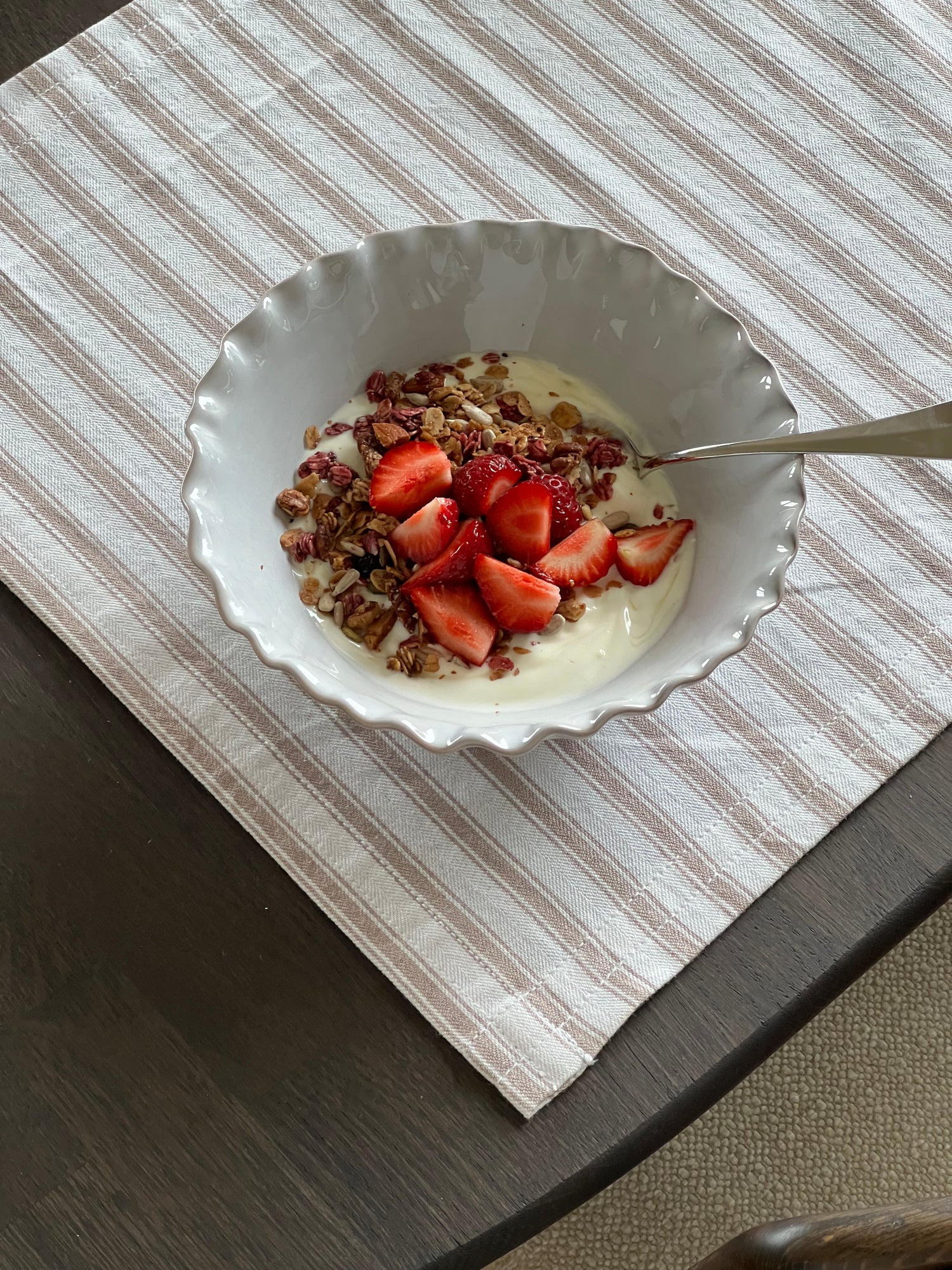 Slow breakfasts on the terrace are one of my favorite things in summer. I’ve completely fallen for homemade granola and keep making more as soon as the previous batch runs out. To me, it tastes best simply with Greek yogurt and fresh seasonal berries. I love how that combination makes everyday mornings feel a little more special – like a small celebration to start the day.
