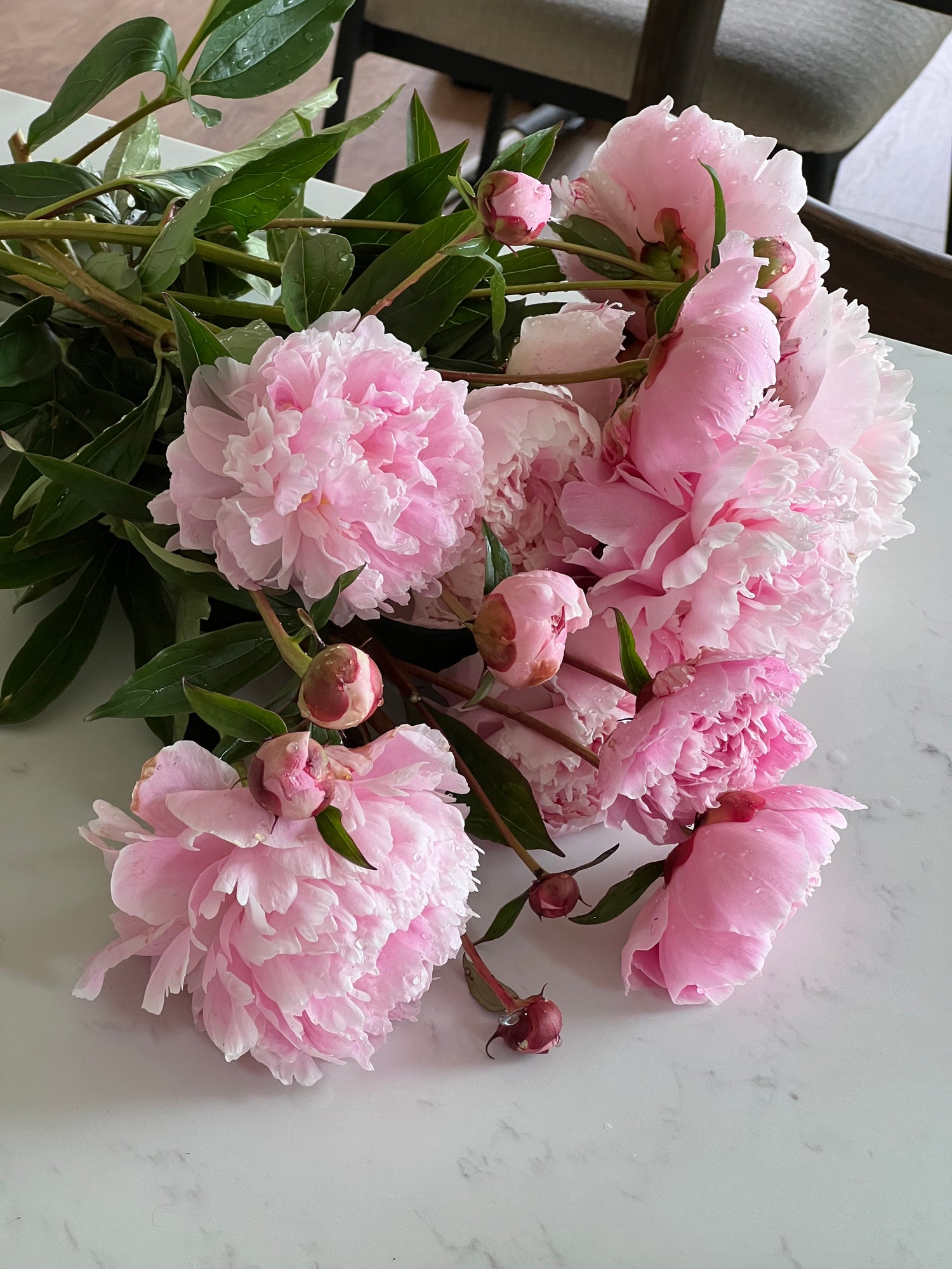 Two years ago, I planted Sarah Bernhardt peonies in our garden, and this summer they bloomed with over 90 flowers! So perfect. I’ve admired my mother’s peonies since I was little (hers bloom by the hundreds!), and I’m so happy to now have my own. Their soft pink tones and lush petals bring such a romantic touch to the season.