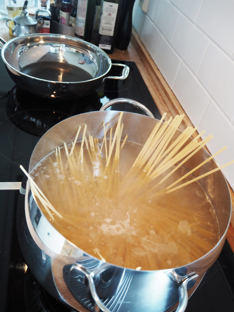 The quality of the pasta matters! Rummo's spaghetti is perfect and can be found in regular grocery stores. Rummo pasta is dried at a low temperature for a longer period of time to preserve nutrients and the pasta is trafilata al bronzo (pasta comes through bronze nozzles) which leaves the surface of the pasta rough and allows the sauce to absorb better. If you have the time, it's worth making the pasta yourself. The starch in the flour makes the sauce even thicker. Basic recipe for pasta dough here.