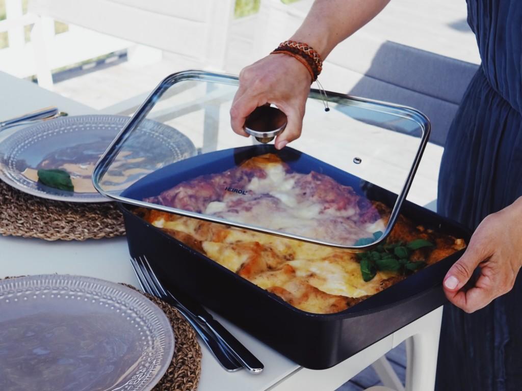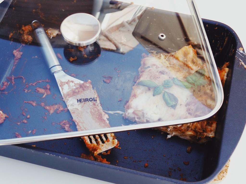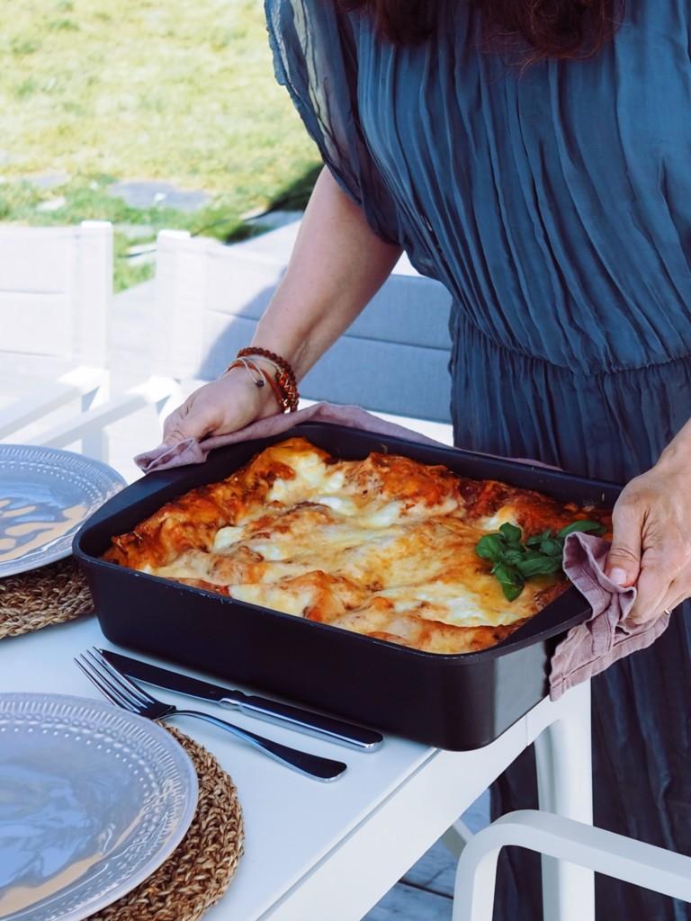 Take the lasagna out of the oven and let it rest a bit before serving!